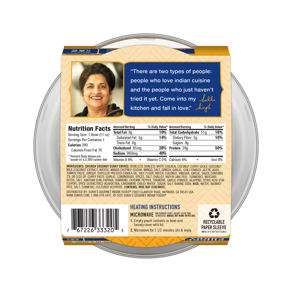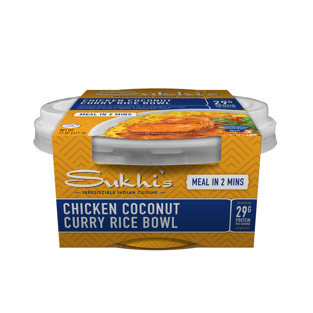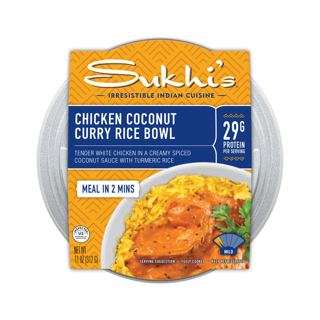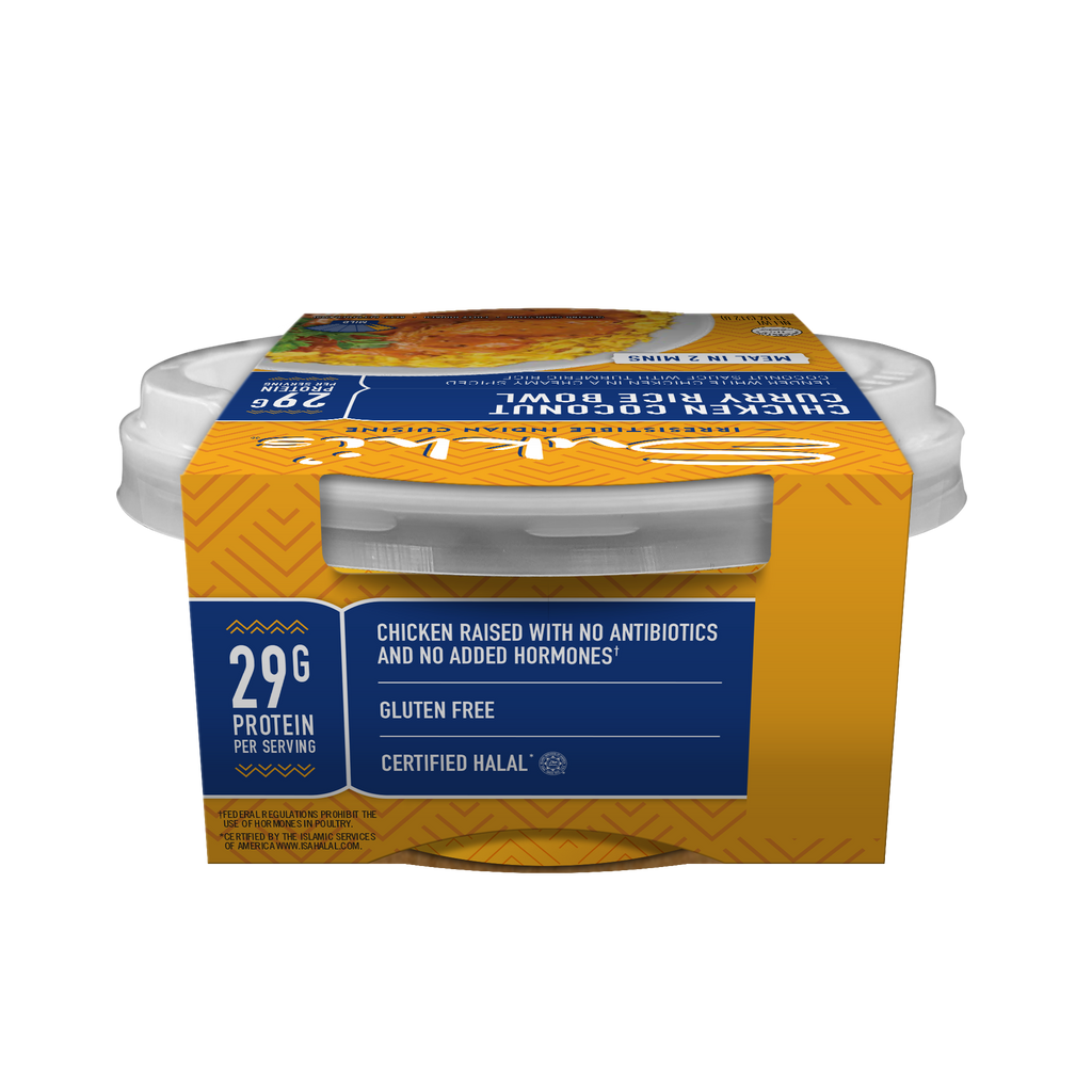 Creamy coconut, a hint of spice, and satisfying protein Escape to the tropics with our Chicken Coconut Curry Rice Bowl. Juicy chicken is coated in a creamy, spiced coconut sauce with notes of ginger, lemongrass, and tamarind — balanced by turmeric basmati rice.