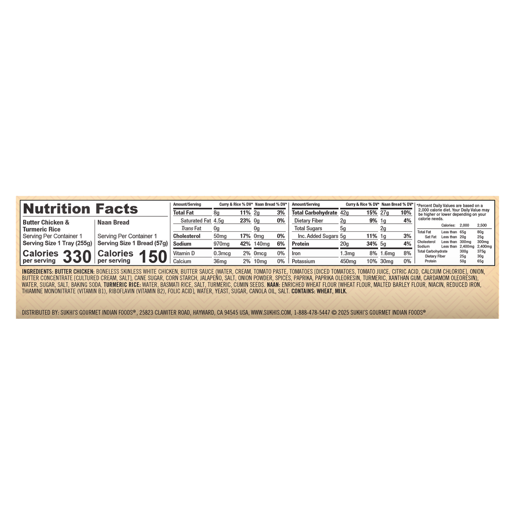 Butter Chicken Curry Frozen Meal with Naan & Turmeric Rice